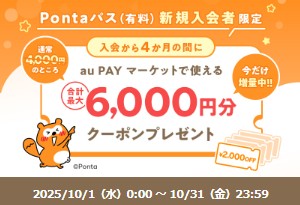 Pontaパスでは、現在お得なキャンペーンが実施中。
